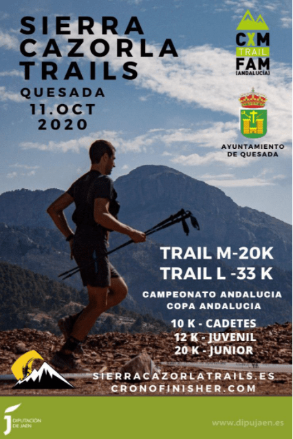 «El Ayuntamiento de Quesada y la Federación Andaluza de Montañismo informan que queda APLAZADA la V Sierra de Cazorla Trails ‘Campeonato de Andalucía Individual y última prueba de la Copa Andaluza’ tras la comunicación recibida por parte de la Delegación de Salud de la Junta de Andalucía en Jaén, en la que se desaconseja la celebración del evento por el alto índice de contagios por coronavirus que se han dado en el municipio de Quesada en la última semana.