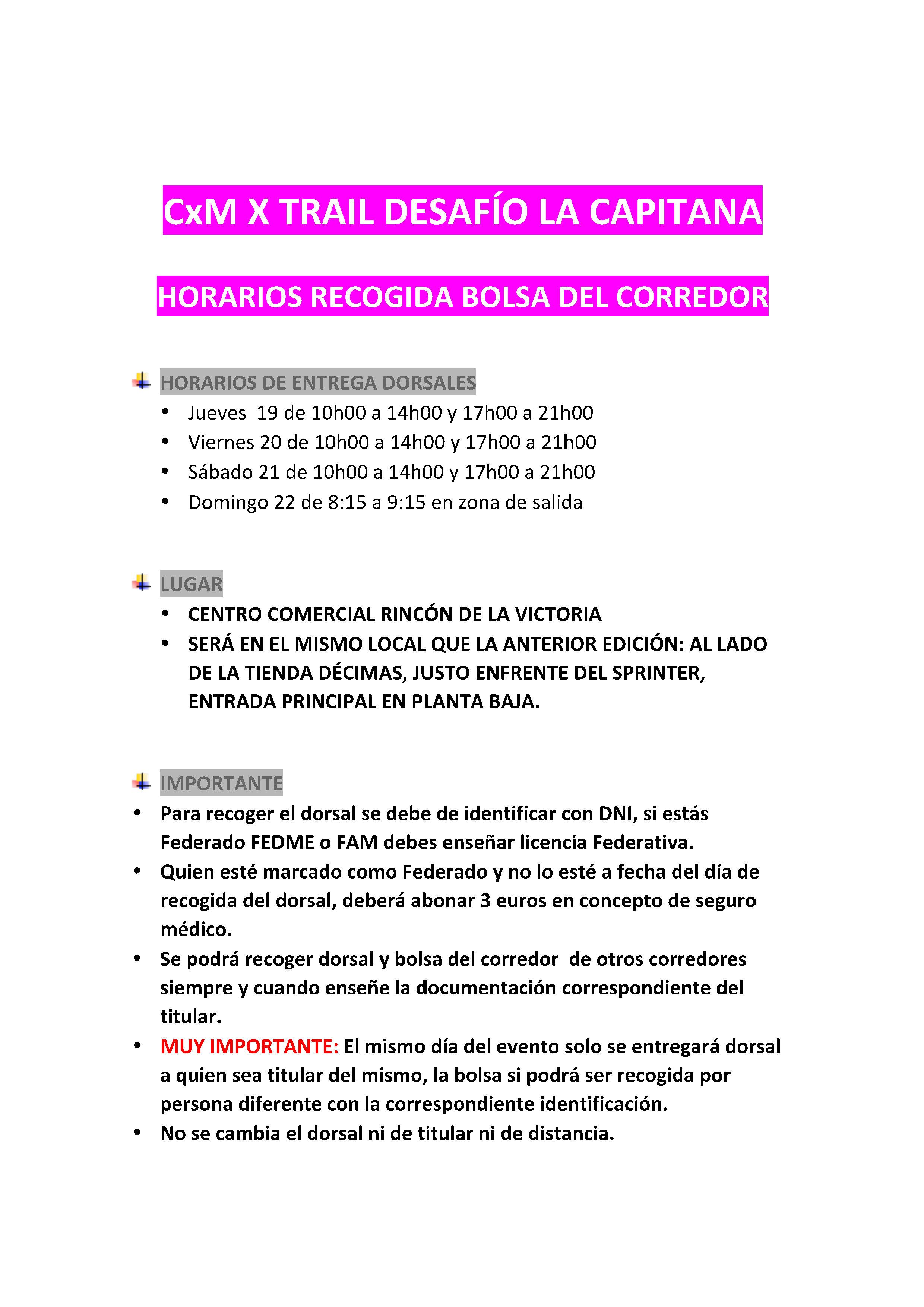 HORARIOS DE ENTREGA DORSALES EN CENTRO COMERCIAL RINCÓN DE LA VICTORIA-1 Deja un comentario Cancelar la respuesta Δ